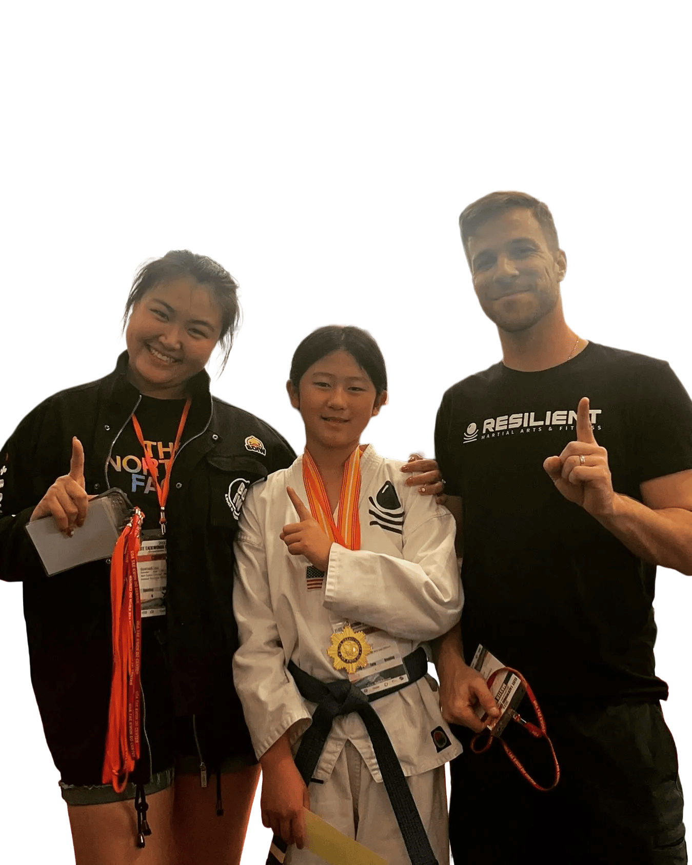 At Resilient, every journey matters — whether it’s a child building confidence and focus, a teen discovering discipline, or an athlete preparing for competition. We combine the warmth of a family-focused studio with the high standards of Olympic-style Taekwondo, creating a space where students feel supported while also being challenged to achieve their best. Here, encouragement and excellence go hand in hand, helping every student grow stronger on the mat and in life.
